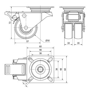 Rueda mobiliario pletina Gayner diametro 50 mm. DPG1 050-FS codigo 20-43-FS