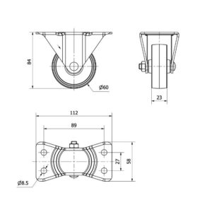 Rueda nylon-poliamida fija Alex diametro 60 mm. modelo 4-0110