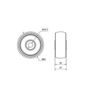 Rueda poliuretano giratoria Alex diametro 60 mm. modelo 2-2525