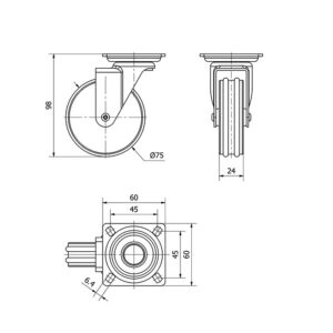 Rueda aluminio giratoria Alex diametro 75 mm. modelo 1-0536