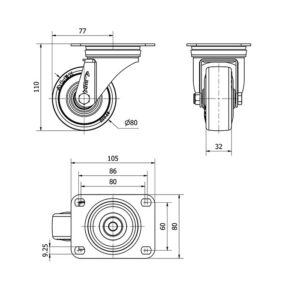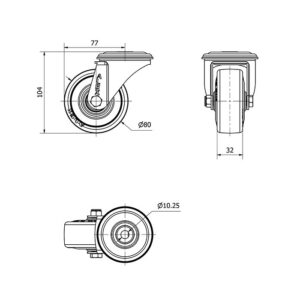 Rueda goma giratoria Alex diametro 80 mm. modelo 2-3240