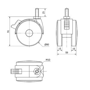 Rueda poliamix giratoria Alex diametro 80 mm. modelo TW0042