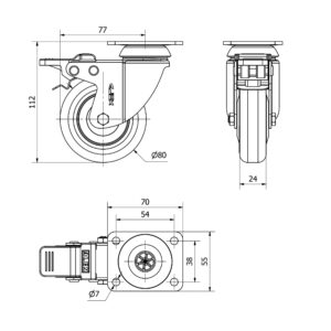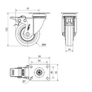 Rueda poliuretano giratoria con freno Alex diametro 80 mm. modelo 2-2470