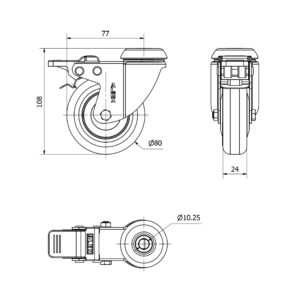 Rueda poliuretano giratoria Alex diametro 80 mm. modelo 2-4224