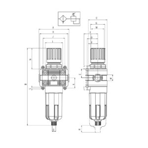 Filtro regulador lubricador Aignep FR+L2 20 micras 0-12 bar purga automatica con rosca 1/2″ T100205242100