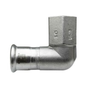 Codo 90º rosca hembra prensar hembra acero inoxidable A-316L 3/4″ D-22 mm.