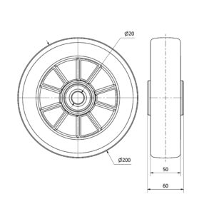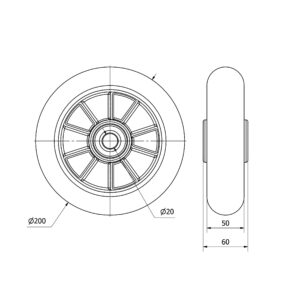 Rueda poliuretano aro suelto Alex diametro 200 mm. 4-0488