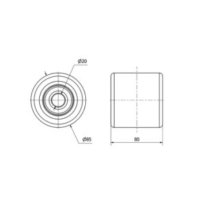 Rueda poliuretano aro suelto Alex diametro 85 mm. modelo 2-3140