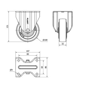 Rueda goma fija Alex diametro 80 mm. modelo 2-1320