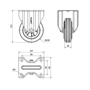 Rueda goma fija Alex diametro 100 mm. modelo 2-3275