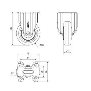 Rueda goma fija Alex diametro 80 mm. modelo 2-3270