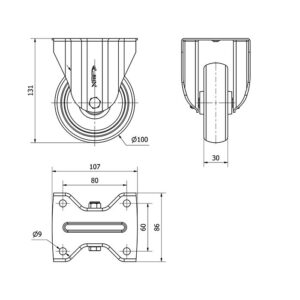Rueda goma fija Alex diametro 100 mm. modelo 2-3272