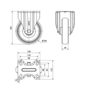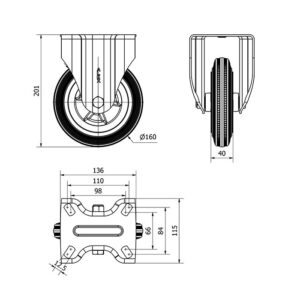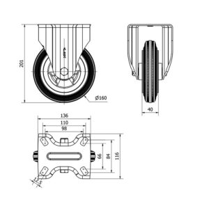 Rueda goma fija Alex diametro 160 mm. modelo 2-4744