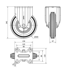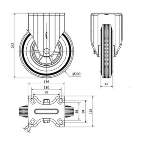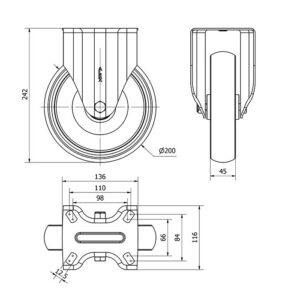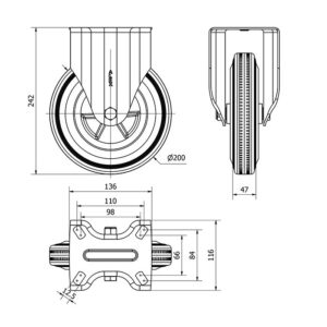 Rueda goma fija Alex diametro 200 mm. modelo 2-4759