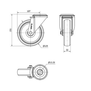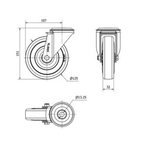 Rueda goma giratoria Alex diametro 125 mm. modelo 2-3266