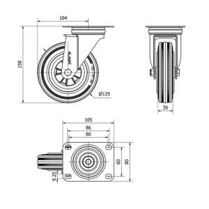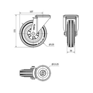 Rueda goma giratoria Alex diametro 125 mm. modelo 2-3296