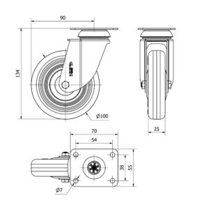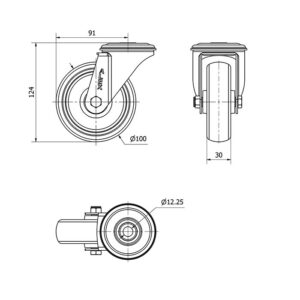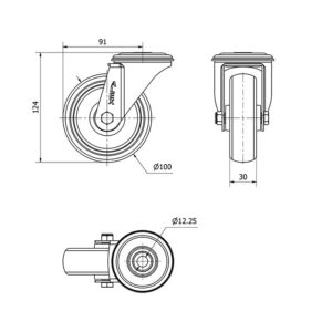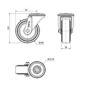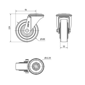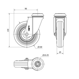 Rueda goma giratoria Alex diametro 100 mm. modelo 2-3040