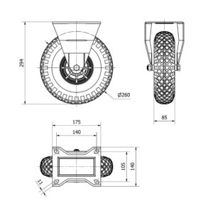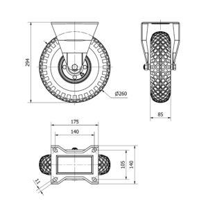 Rueda neumatica fija Alex diametro 260 mm. modelo 4-1258