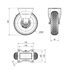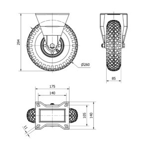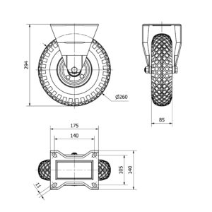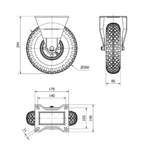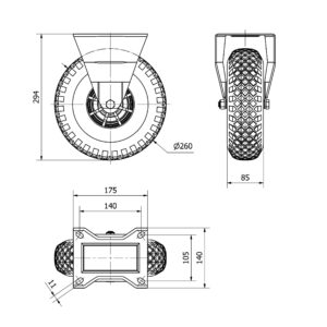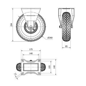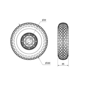 Rueda neumatica fija Alex diametro 260 mm. modelo 4-0925
