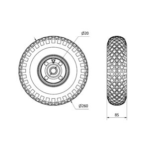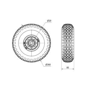 Rueda neumatica aro suelto Alex diametro 260 mm. modelo TW0285