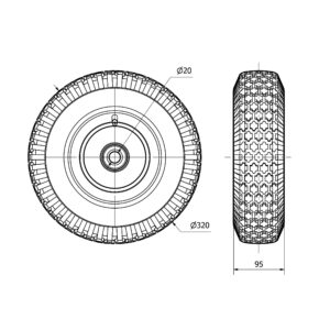 Rueda neumatica aro suelto Alex diametro 320 mm. modelo 4-0929