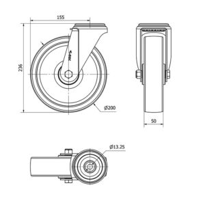Rueda nylon-poliamida giratoria Alex diametro 200 mm. 2-2705