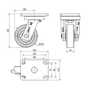 Rueda poliuretano giratoria Alex diametro 125 mm. 2-0483