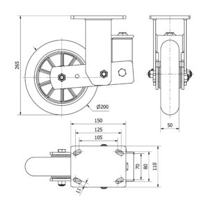 Rueda poliuretano giratoria Alex diametro 150 mm. 2-1865