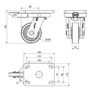 Rueda nylon-poliamida giratoria con freno Alex diametro 150 mm. 2-3958