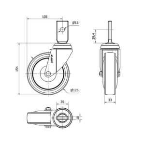 Rueda goma giratoria Alex diametro 125 mm. 2-1133