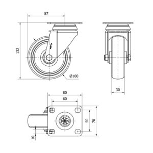Rueda goma giratoria Alex diametro 100 mm. 3-0004