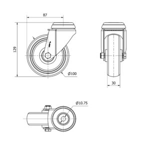 Rueda goma giratoria Alex diametro 100 mm. 3-0008