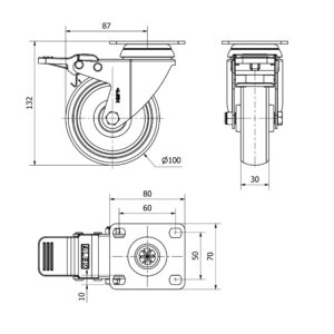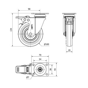 Rueda goma giratoria con freno Alex diametro 100 mm. 1-0303