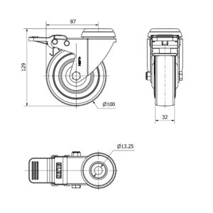Rueda goma giratoria con freno Alex diametro 100 mm. 2-3318