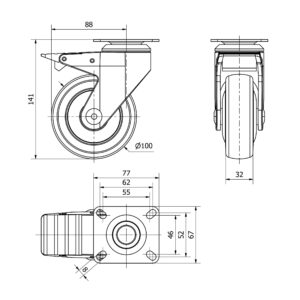 Rueda goma giratoria con freno Alex diametro 100 mm. 4-1556