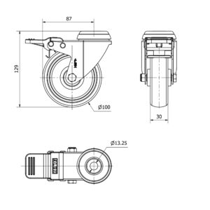 Rueda goma giratoria con freno Alex diametro 100 mm. 2-4618