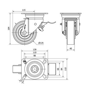 Rueda poliuretano giratoria con freno Alex diametro 125 mm. 2-2017