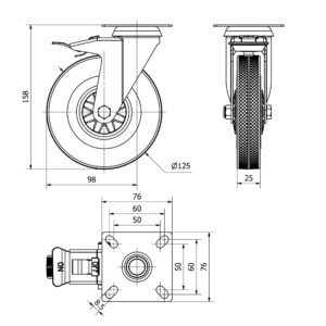Rueda goma giratoria con freno Alex diametro 125 mm. TW0096