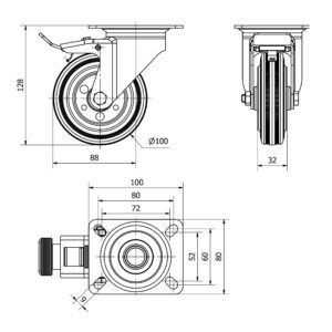 Rueda goma giratoria con freno Alex diametro 100 mm. TW0279