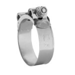Abrazadera cincada Super 104-112 mm. W1 n nHOJA TECNICA n nSu sistema de apriete está basado en una tuerca hexagonal de alta resistencia, lo que garantiza un fácil apriete con cualquier tipo de herramienta. Su borde biselado evita cortes en los tubos y gomas. Especialmente indicada en la agricultura y en la minería, además de todo tipo de transportes de fluidos.