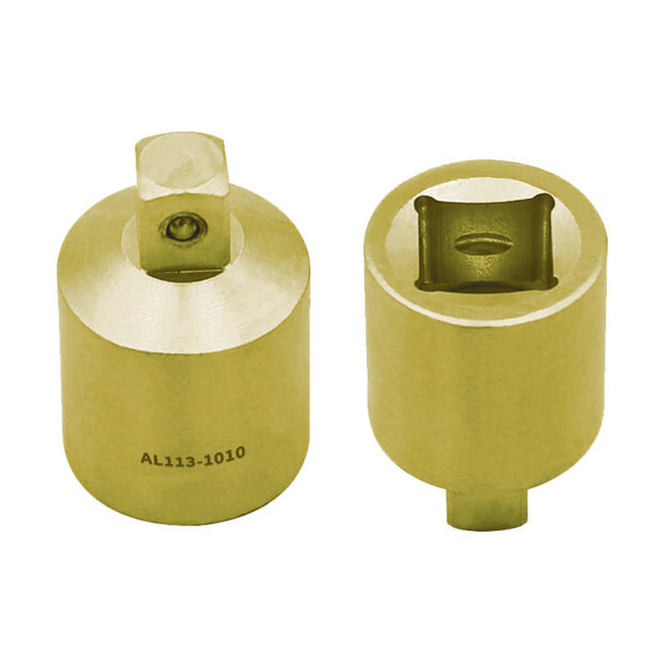 Adaptador de llaves de vaso antichispa, concebido para su uso en entornos potencialmente explosivos, al estar fabricado en aleación de aluminio-bronce.