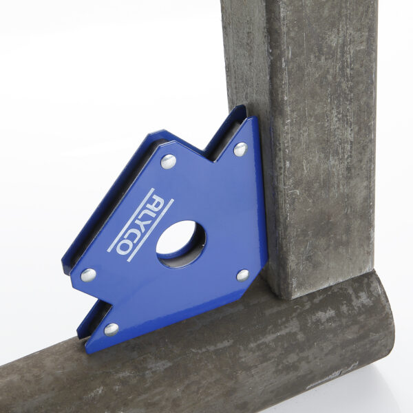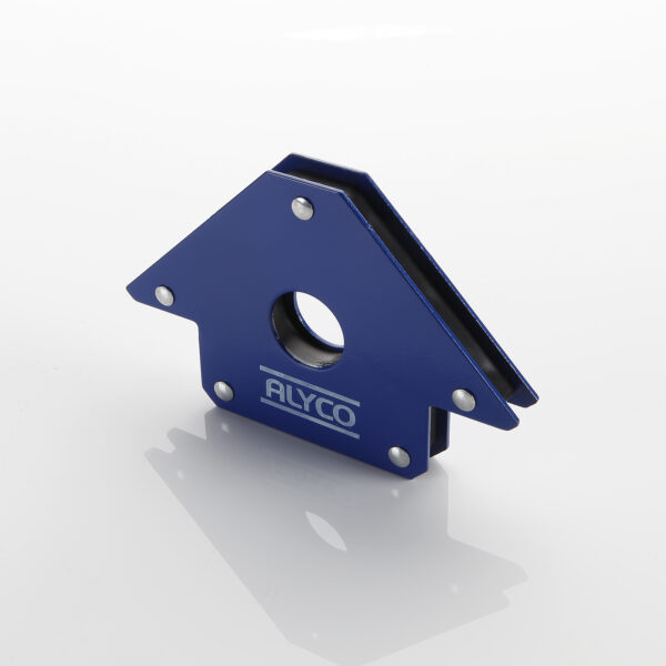 Angulo magnetico 45 Kg. 150 mm. Alyco codigo 197996 EAN 8421504979968 n n n nEscuadra con imán de neodimio muy potente, protegido por dos chapas remachadas lo que le da muy larga vida, fiabilidad de ángulo y potencia.nIndicado para sujetar piezas metálicas de acero en 45º, 90º y 135º, y realizar trabajos de soldadura, atornillado, pegado, etc. con el ángulo deseado, pudiendo hacer la operación de soldado con las manos libres.nÚtil para soldar y ensamblar tubos y barras metálicas con múltiples posibilidades de ángulo. También útil como soporte de marcado y separado de planchas.nCirculo para elevación de cargas usando un gancho que se introduce en el circulo.nIndicado para soldaduras, instalación de tuberías y montajes.