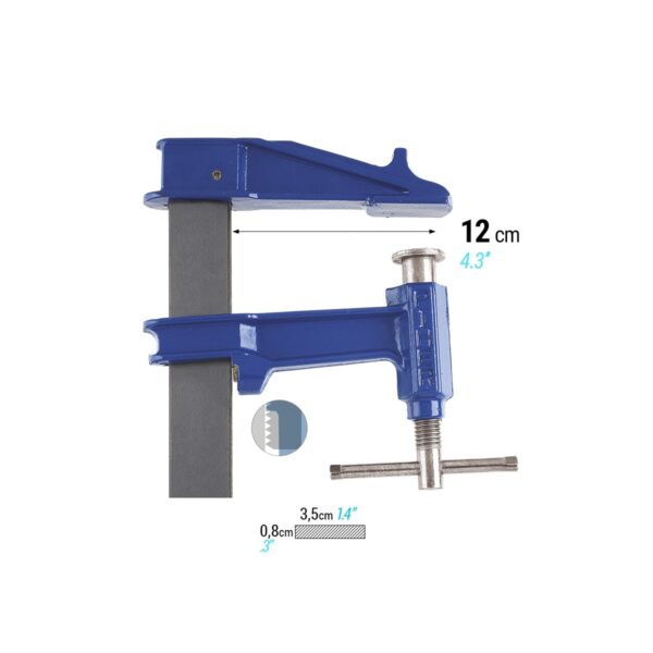 Fuerza maxima = 900 Kg. Llanta 35×8 mm. de acero laminado de alta resistencia. Alcance 12 cm. Freno anti-deslizante patentado.