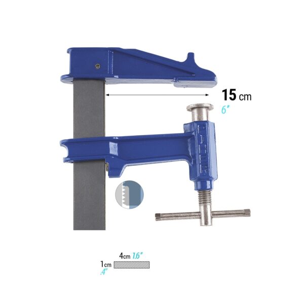 Fuerza maxima = 1000 Kg. Llanta 40×10 mm. de acero laminado de alta resistencia. Alcance 15 cm. Freno anti-deslizante. Sistema anticaida.
