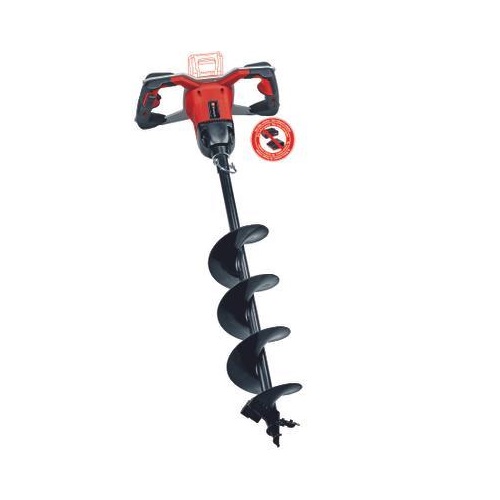 La barrenadora con batería Einhell GP-EA 18/150 Li BL-Solo ayuda a los operarios de jardines y huertos familiares como gran ayudante al plantar el verde doméstico y también al trabajar en el adorno de jardín, como colocar postes para vallas, colocar decoraciones en tierra o cavar cimientos circulares. El equipo con batería se envía inclusive accesorio de barrenadora (longitud 80 cm. / diámetro 15 cm.). La barrenadora con batería es miembro de la familia Power X-Change de Einhell, las baterías con las células de batería de iones de litio de alta calidad se pueden combinar con todos los equipos de sistema de la serie. La batería y el cargador no están incluidos en el alcance del envío, estos son adquiribles por separado. Para el funcionamiento de la barrenadora es necesaria una batería PXC de 18V. El motor sin escobillas acciona la rosca en la tierra, el motor sin escobillas convierte la potencia óptimamente en la barrenadora y tiene una vida útil mayor que los motores de escobillas de carbono convencionales. Además, el equipo con batería está equipado con una carcasa de engranajes de aluminio. La barrenadora puede ajustarse en 3 modos distintos: 1) Marcha a izquierda para separar el barreno 2) Marcha a derecha en modo ECO Power. Ajuste de fuerza regular para tareas de perforación fácil en sustrato blando y 3) Marcha a derecha en modo HIGH Power. Ajuste de fuerza máximo con sustrato duro. El marco metálico robusto ofrece una máxima estabilidad y rigidez a torsión, la empuñadura doble con agarre suave ofrece la práctica manipulación para trabajo ergonómico.