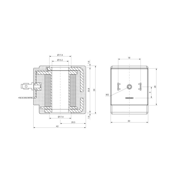 Bobina DB Aignep talla 30 13 mm. 24 V. DC. 14 W. SOL20024C6000