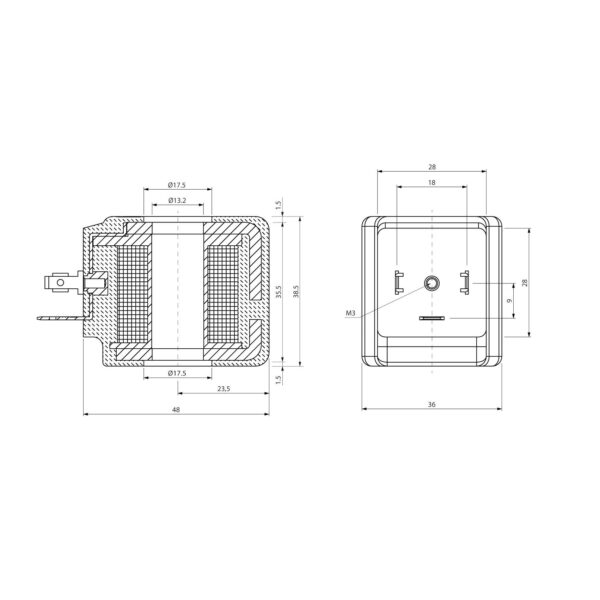 Bobina E2 Aignep talla 36 13 mm. 110 V. AC. 50/60 Hz. 31 VA. SOL21110AC000