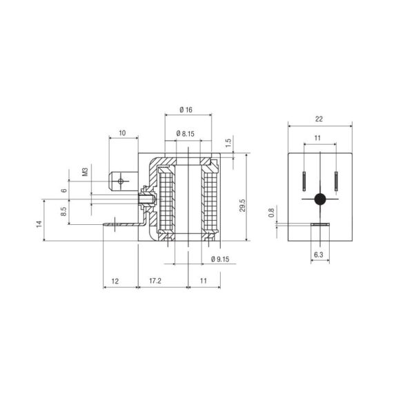 Bobina norma UL Aignep 9 mm. 110 V. AC. 5 VA. SOLU1110A2000