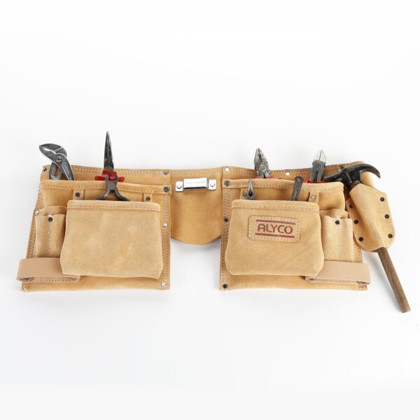 Bolsa fabricada con cuero de primera calidad, con remaches y costuras reforzadas en toda la superficie. Gran capacidad de soporte de las herramientas y larga vida.