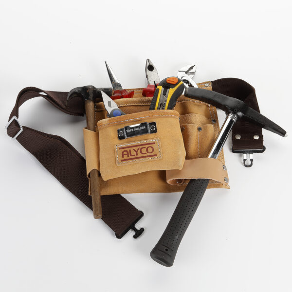 Gran capacidad de contenido de herramientas, clavos, etc. Muy alta versatilidad de herramientas integrables. Muy apta para operarios de construcción con diferentes labores.